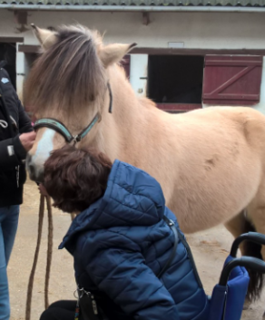 De retour à la maison, trois mois de recherches personnelles n’ont pas abouties ; néanmoins, le SAMSAH de Meaux me proposa une rencontre avec une toute jeune association au centre équestre du Pin qui travaillait avec une équithérapeute.Florence se présenta comme Présidente de l’association Qilin et Caroline, l’équithérapeute qui devait m’accompagner si nous trouvions un accord. J’étais étonnée de tant de précautions, habituée à prendre des risques pour des gestes quotidiens et tellement persuadée que ce seraient elles qui étaient, par définition de cette association, à même de tenter quelques séances.