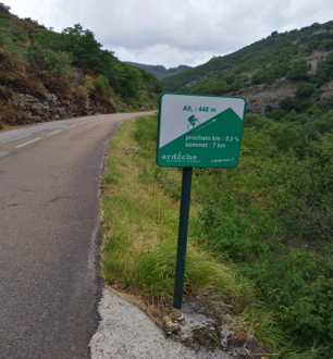 Le jeudi 9 à 13h, après avoir passé le Mont Mézenc, je débute l'aventure en « solo » et roule jusqu'au lac d'Issarlès (07) où je dors dans une caravane d'un camping à la ferme ( j'échange un peu avec le gérant atteint de « Parkinson » à qui je donne un dépliant de CSC).Le lendemain je pars pour Langogne (48) et me mélange aux pèlerins du « chemin de Stevenson » dans un gîte le soir. Puis direction La Bastide-Puy-Laurent(48), Villefort (30), Gagnières (30), Grospierres (07) et St-Germain (07) chez Pascal afin de faire une pause d'1 semaine (bienvenue car la 1ére canicule arrivait avec près de 40°C dans les derniers kilomètres !...)pour la fin de la partie « aller », avant d'envisager la remontée, et après 389km ! Physiquement, j'étais vraiment à la limite et les grosses chaleurs des derniers jours m'ont « achevé »... le repos fut très appréciable surtout qu'une chute (en descendant un escalier dans le gîte du camping...) est survenue la veille !