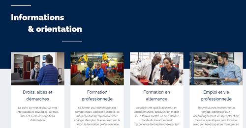 Elle offre actuellement une série de contenus généralistes sur les aides et les droits des personnes en situation de handicap et des contenus spécialisés sur l’emploi et la formation professionnelle.