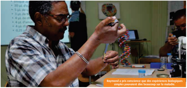 Pour prévenir leur évolution, François, lui, a pris le parti de mieux manger et de reprendre une activité physique compatible avec son handicap. « Mon optimisme à moi, c’est de me dire que se soigner, c’est s’adapter. Alors je m’adapte. » D’autres ont moins de chance. C’est le cas de la jeune Lydia, dont le syndrome l’empêche de se déplacer autrement qu’en fauteuil roulant. « En participant à cette session de l’école de l’ADN, elle a fait une première démarche vers l’acceptation de sa maladie », confie son père, Raymond, qui a un autre enfant atteint.