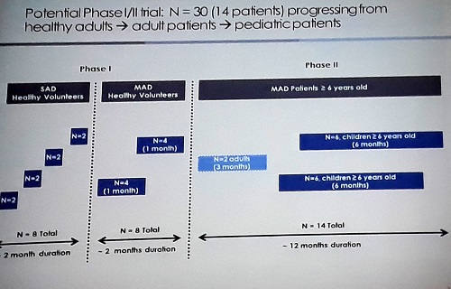 Par contre, à ce jour, il n’est pas possible d’évaluer les impacts sur le cervelet. Seul les effets sur la glycosylation dans le foie ont été évalués. Ce médicament pourrait être pris par injection intraveineuse chaque semaine. Glycomine envisage des essais cliniques d’abord auprès d’un panel d’adultes fin 2019 puis sur une douzaine d’enfants dès 2020. Il est néanmoins rappelé que l’homologation de ce type de médicaments est généralement longue et que sa commercialisation pourrait prendre plusieurs années.
