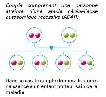 Pour qu’il y ait un risque de transmission d’une ataxie récessive, les parents doivent être tous les deux des porteurs sains. Pour plus d’informations, lire les parties « Diagnostic » des ataxies cérébelleuses de transmission dominante (ACAD) et des ataxies cérébelleuses de transmission récessive (ACAR) dans le chapitre 2 du livret d'accueil CSC (voir le lien en téléchargement ci-dessous).
