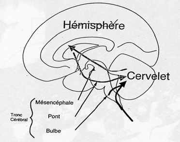 C’est un véritable ordinateur central qui à chaque instant reçoit des informations, informe les centres nerveux, repère les erreurs, fait des comparaisons et corrige le programme moteur.