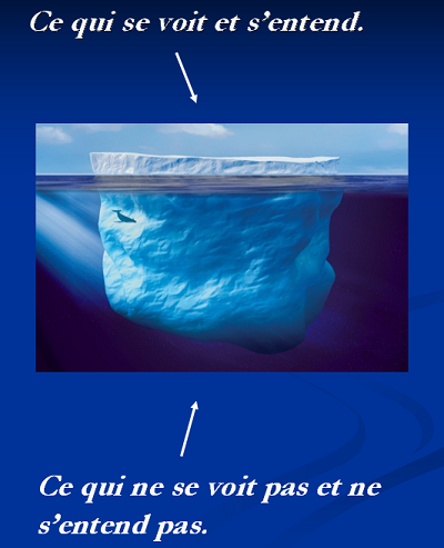 A l’instar d’un iceberg, les syndromes cérébelleux présentent une partie émergée, celle des symptômes qui se voient et s’entendent (tremblements, troubles de l’équilibre, de la marche, de la parole, de la respiration, du suivi oculaire, etc.), mais aussi une immense partie immergée, celle des symptômes sous-jacents qui ne se voient et ne s’entendent pas (troubles du langage, de la réflexion mentale ou de la compréhension). C’est cette partie immergée que je souhaite mettre en lumière aujourd’hui.