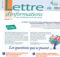 Cette douzième lettre d’informations s’adresse au professionnel de santé afin de les sensibiliser aux douleurs chroniques dans les ataxies spinocérébelleuses et Paraparésies Spastiques Héréditaires.