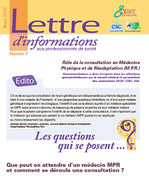 Cette septième lettre d’informations s’adresse au professionnel de santé devant orientée un patient atteint d’un syndrome cérébelleux, vers un médecin MPR (Médecine Physique et de Réadaptation).